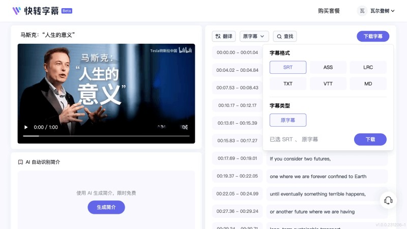 - 生成的字幕可以翻譯和下載